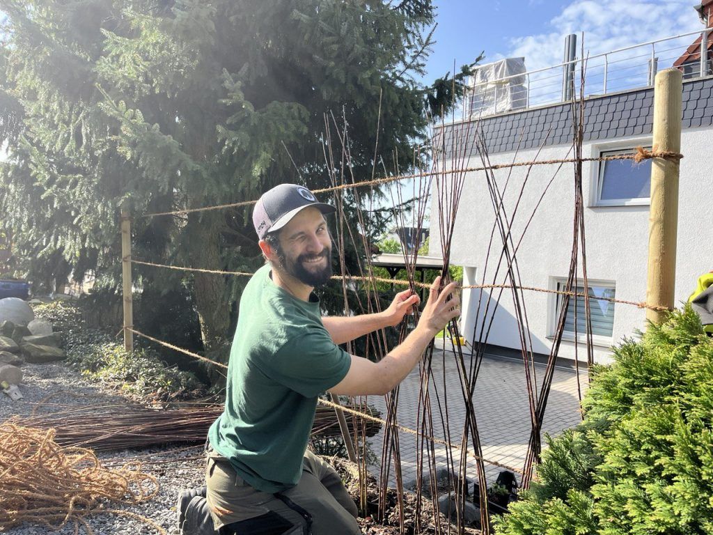 Statt eines Zauns entstand eine lebendige Weidenhecke: ökologischer Sichtschutz, Windbremse und wertvoller Lebensraum in einem. Wir haben standortgerecht gepflanzt und die Anwuchspflege geplant – damit die Hecke schnell schließt und dauerhaft vital bleibt Jungbaumpflege.