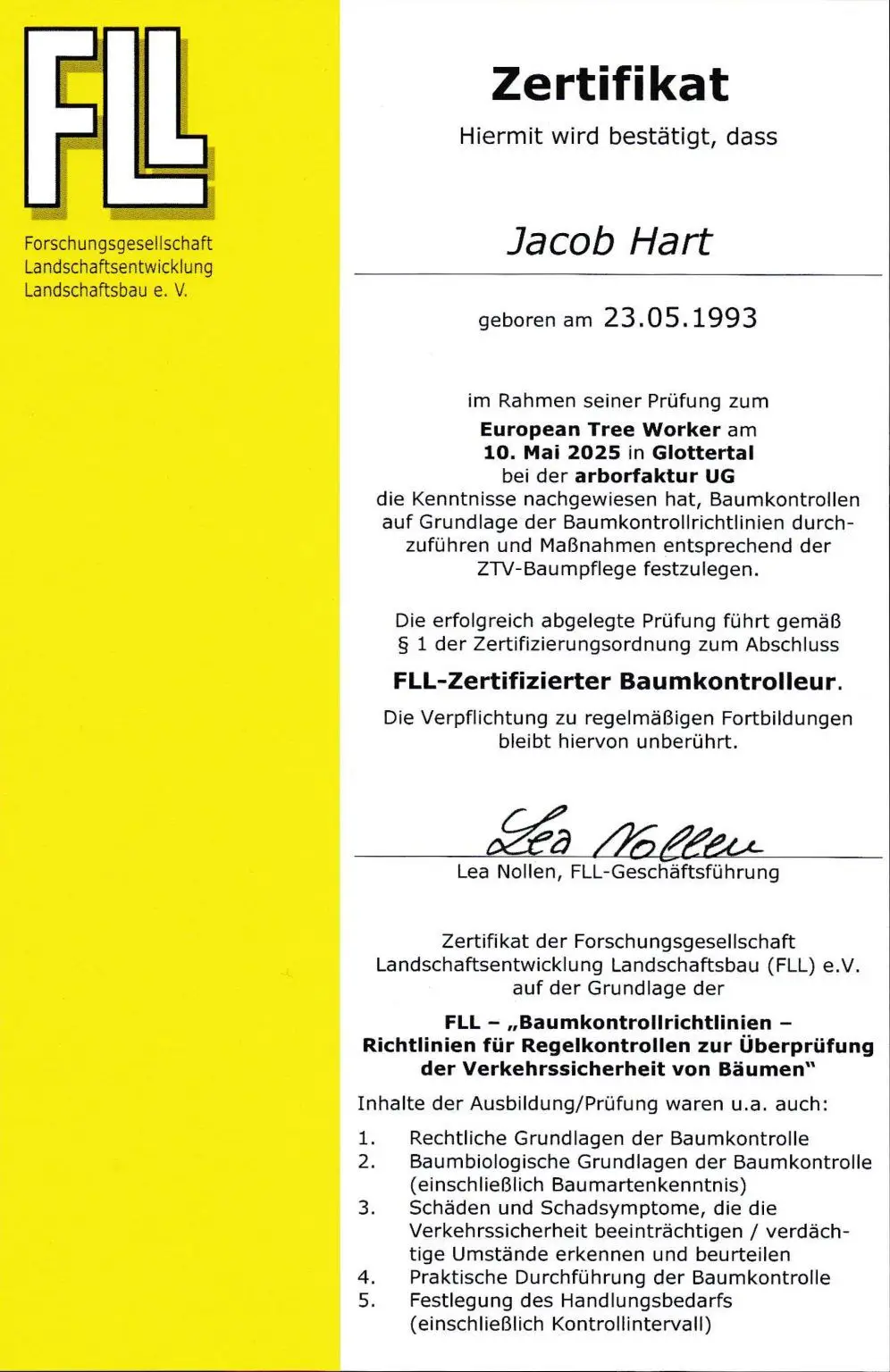 Die Bergische Baumpflege, gegründet 2024 von Jacob Hart steht für hochwertige Baumarbeiten. Mit Leidenschaft für Natur und einer praktischen Herangehensweise wollen wir Ihnen helfen, unsere großen grünen Freunde zu pflegen.