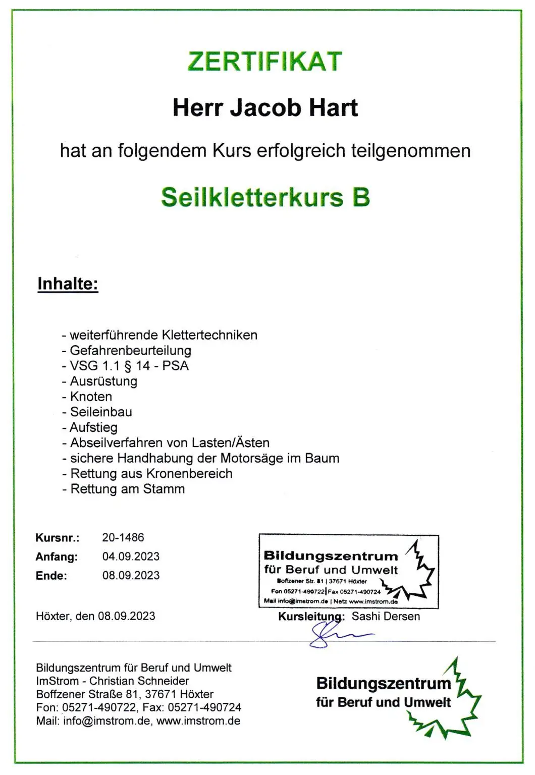 Neben meiner Arbeit im Baum stecke ich auch gerne den Kopf in Technik: Aktuell studiere ich Maschinenbau – ein zusätzlicher Blickwinkel, der mir bei der Einschätzung komplexer Situationen, der Seiltechnik und beim sicheren Umgang mit Maschinen zugutekommt.